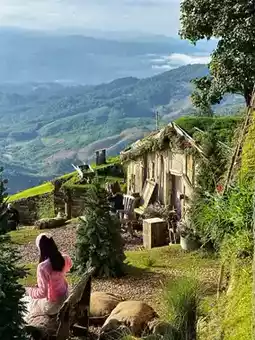 "Akha Farmville," a small cafe and homestay on Doi Chang, hides a hobbit village nestled amidst the mountains. 🌿