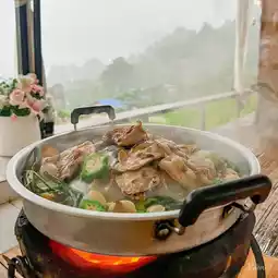 Check in📍Enjoy the rain, you have to order and wait for it. Grilled pork🐷 with the fragrant smell of rain mixed with fog, you can't find an atmosphere like this anywhere else. #On this trip, Nicky slept in a VIP room which was air-conditioned✨with a private bathroom, very comfortable
