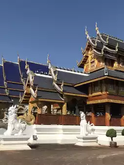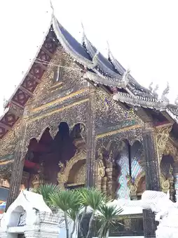 The temple features intricately decorated chapels, halls, and pagodas adorned with gold, red, and white tones, blending Lanna and Burmese designs harmoniously. Every corner is filled with exquisite details, including elaborate wood carvings, offering endless photo opportunities.