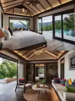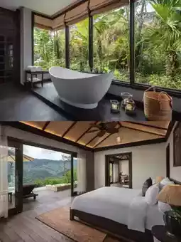 🏡 The resort's unique architecture combines local culture with modern design. The wooden houses blend perfectly with the natural surroundings, creating a sense of returning to nature. The rooms are well-equipped and cozy, with large windows that let in plenty of sunlight. You can enjoy the beautiful view from your bed.