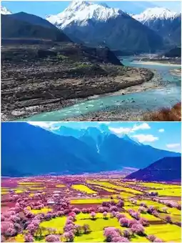 Morning: Head to Gala Peach Blossom Village. From February to March, it is the season when peach blossoms are in full bloom. The pink sea of flowers contrasts with the distant snow-capped mountains, making it breathtakingly beautiful 🌸.