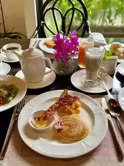 The breakfast spread was amazing, with a variety of options that made it hard to choose just one dish. We both ended up loving the pancakes, which were light, fluffy, and perfectly topped with syrup and fruits. It was definitely a highlight of the meal!
