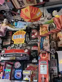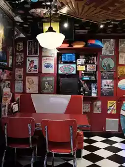 Hearty dishes served in a kitschy American-themed diner decorated with 1950s memorabilia.