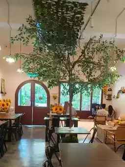 One of my favorite stops during my Manila trip was this sunflower-themed café that radiates calm and charm. With yellow blooms and cozy corners, it felt like stepping into a happy daydream. I ordered their signature drink — a delightful mix of matcha and mango — and it tasted like summer in a glass. The refreshing blend had the earthy tone of green tea balanced with a fruity twist.