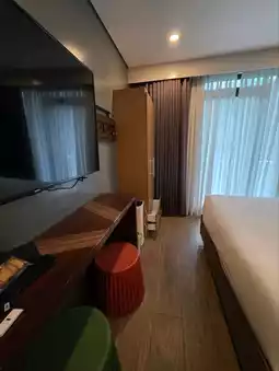Step into your stylish room—spotless clean, with a cozy bed and crisp air conditioning perfect for late-night lounging and Netflix marathons on the widescreen TV. You're seconds away from Poblacion’s buzzing nightlife, with bars, food spots, and cultural gems all at your doorstep.