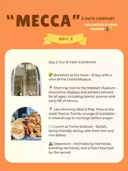📍 Morning: Visit to the Makkah Museum – Interactive displays and exhibits tailored for all ages, including Islamic science and early life of Mecca.