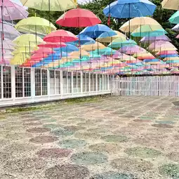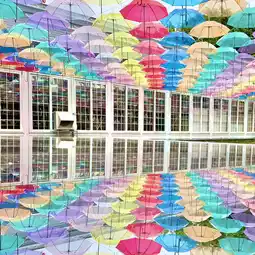 The main Umbrella Sky is located in the free area, but there are also displays in the paid area.