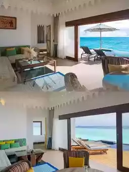 The hotel's accommodations are truly exceptional🏝. I stayed in an overwater villa, where the wooden exterior blends harmoniously with the natural surroundings, exuding a tropical charm. The interior is spacious and bright, with luxurious furnishings. The bed is incredibly soft and comfortable, and the bedding is skin-friendly and breathable, ensuring a restful sleep every night. The large floor-to-ceiling windows offer stunning ocean views. Waking up to the sight of the endless ocean is incredibly invigorating. The private terrace has direct access to the sea via a ladder, allowing for spontaneous swims – a truly amazing experience.