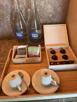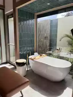 Perfect for a honeymoon trip, the hotel thoughtfully decorates the bed beautifully. They also provide welcome snacks and a bottle of champagne. The room comes with complimentary capsule coffee and tea bags. The space is spacious, featuring a private pool where you can relax in the water every day.