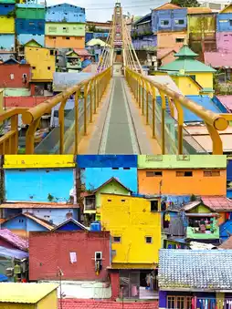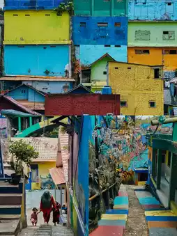 Malang itself has a unique charm, with streets full of local flavor, and the Rainbow Village is located in a corner of the city, like a bright pearl🌟, particularly dazzling. When you wander through the streets of Malang, and suddenly come across a colorful house, the surprise is indescribable🥰. They form a stark contrast with the slightly rustic buildings around them, yet blend harmoniously together, as if nature accidentally spilled a palette🎨, sprinkling the most brilliant colors on this small neighborhood.
