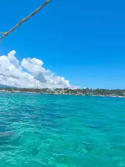 — On the way to island hopping tour, the small island beach, the water is super clear.