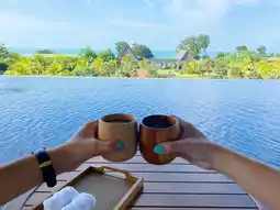 Sea•Fire•Salt, the seaside restaurant, offers a romantic ambiance and excellent service. Reservations are required upon check-in. While the views and atmosphere are fantastic, the food didn’t quite meet our expectations. After providing feedback, the chef personally came out to apologize and listen to our suggestions.