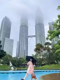 👉🏻 KLCC Park is a public park with a view of the Petronas Twin Towers. It's another great photo spot. Stand near the swimming pool for a stunning photo with the Petronas Twin Towers as a backdrop. (We went when it was raining, so it gave us a different vibe, with the mist floating in the sky. It's quite beautiful.)