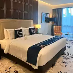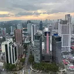 In the heart of Bukit Bintang. The rooftop has the most beautiful view of the Petronas tower at night. The atmosphere is cosmopolitan and the staff are professional and friendly. The rooms are very comfortable with a kitchenette and a washing machine & dryer. We had a view of KL tower from our room. The rooms are spacious and nice, breakfast and restaurant are awesome. Roof Swimming pool is lacking view its not the same as on internet pictures.