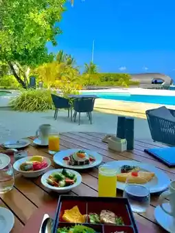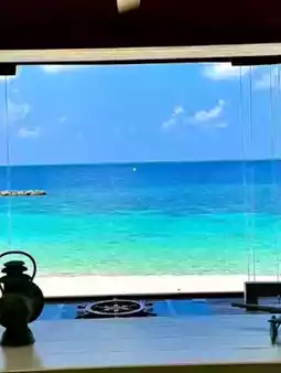 A scenic 45-minute seaplane transfer from Malé International Airport offers panoramic views of the Indian Ocean. 🛩️