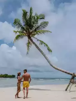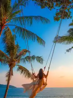 The coconut trees and hammocks on the beach are perfect props for photos. Wear a bikini or a long dress for a vacation vibe.
