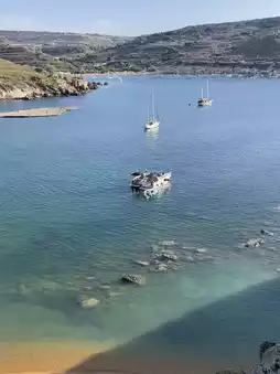 Golden Bay, one of Malta's iconic beaches, is known for its soft sand and crystal-clear waters. A walk along the nearby Clay Cliffs offers breathtaking views of the vast ocean from atop the cliffs. 🏊♀️☀️🌊