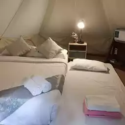 • Air-conditioned teepees: Enjoy luxurious camping-style comfort. All rooms have cool air conditioning and private bathrooms.