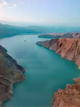 360° unobstructed view overlooking the turquoise reservoir, with Danxia landforms and emerald lake water creating a strong visual impact! Not recommended for those afraid of heights, but truly breathtaking