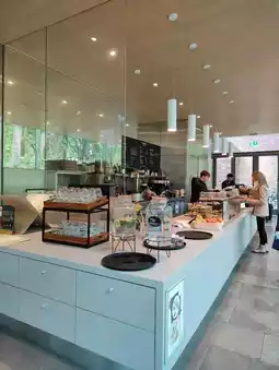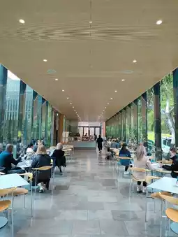 The atmosphere is relaxed and welcoming, with plenty of tables and cozy corners to settle into. Whether you’re stopping by for breakfast, lunch, or just a snack, the menu offers comforting options paired with warm beverages — ideal for a mid-day pause or a reflective moment after exploring nearby exhibits. The garden view adds a layer of tranquility, making it feel more like a conservatory than a café.
