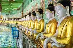 Mandalay does not have as many temples and pagodas as Bagan, but it is famous for its magnificent temples and pagodas, such as the ancient Shwezigon Pagoda and the Mahamuni Buddha Temple, which enshrines the Mahamuni Buddha covered with gold foil. There are eight temples along the 1,000 steps up Mandalay Hill, which is the origin of the city's name.