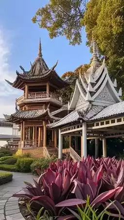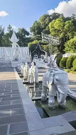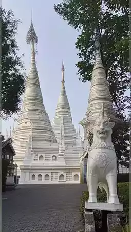🌳The vegetation around the silver pagoda is lush, with green trees and colorful flowers dotted among them, which complement each other with the silver pagoda, like a beautiful picture. Walking slowly up the steps, you can see many exquisite Buddha statues and murals along the way. Each Buddha statue has a different expression and is lifelike, and each mural seems to tell an ancient story, immersing people in a strong Buddhist cultural atmosphere.