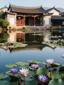 - “Zhu Family Garden” Hanfu dress-up! Choose a blue horse-face skirt, shoot by the lotus pond, sunlight through flower windows casts shadows on the skirt like ink painting (50 RMB/day rental, includes hairstyle)