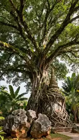 - Afternoon: Visit Mengbanaxi Wonder Garden (ticket 40 RMB), full of tropical plants, ancient trees, and strange stones, perfect for photos with a Southeast Asian filter; stop by the Tree-Wrapped Pagoda (free), its body entwined by banyan roots, a stunning collision of nature and culture.