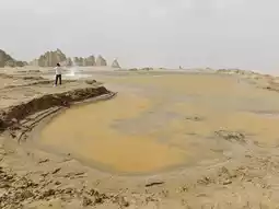 Even more peculiar is that in this extremely dry and desolate land, there are sulfur springs and sulfur lakes known as the "yellow ocean." Small springs gurgled, and a few wisps of mist lingered, bringing a little warmth and pulse of life to this desolate Gobi.