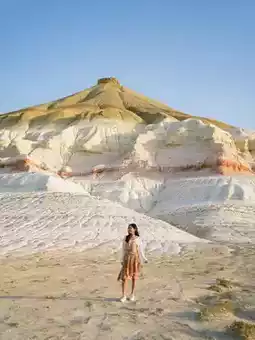 For an in-depth trip to Kazakhstan, Mount Bokty is a must-visit! Although the journey is long, taking you to the far western edge of the country, arriving at this dreamlike destination feels utterly surreal and incredibly breathtaking✨. This geological wonder was formed over hundreds of millions of years through the transformation from seabed to land, shaped by geological activities. Due to its marine origins, the mountain features layers of pink gradients, so iconic that it even appears on one of Kazakhstan's banknotes🥹. We decided to camp at the foot of the mountain to witness the most unforgettable sunrise here. Capturing aerial shots in this location once again reminded us of the insignificance of humanity. This place is undoubtedly one of the most memorable experiences of my life!