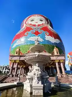 🌈 The most captivating sight at the Manzhouli Port Matryoshka Doll Scenic Area is the [Matryoshka Doll Hotel] 🪆, as if stepping into Europe. The lobby and corridors are resplendent with gold, extremely luxurious, featuring classic murals and Matryoshka doll elements everywhere 🉑. The architecture of the Matryoshka Doll 🪆 Scenic Area reflects Russian 🇷🇺 architectural style throughout, with uniquely shaped onion domes resembling castles from a dreamlike world, telling interesting childhood 🈶 stories.
