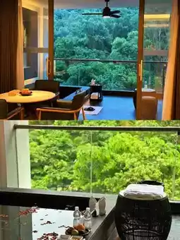 I booked a mountain view terrace hot spring room, and the space was more spacious than I imagined. As soon as I stepped into the room, my body and mind were instantly relaxed. The balcony has its own private hot spring pool. When night falls, soak in the warm pool with lush mountain views in front of you. The breeze is blowing, and all the fatigue of the day disappears. It is very pleasant.
