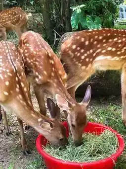 - Change into work clothes, prepare feed, and wait quietly for the deer. Pro tip: Add some carrots 🥕 to the feed—deer are more willing to approach when they see them!