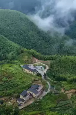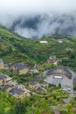 Wander through bamboo paths at 1,000 meters above sea level—a sea of soothing emerald green! Climb to the Green Forest Square for a panoramic view, evoking the vibe of *Crouching Tiger, Hidden Dragon*. At sunset, the golden lights of the earthen architecture make it feel like a "miniature Qianhu Miao Village."