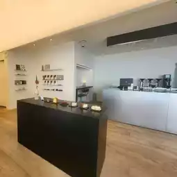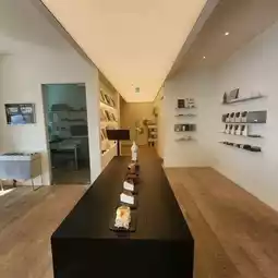 The soft music and modern interior, especially the unique lights and Braun Design Collection, stand out!