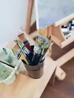 Next to the bar counter, there are paintings and stylish decorations reminiscent of an artist's studio, adding a touch of artistic charm wherever your eyes wander.