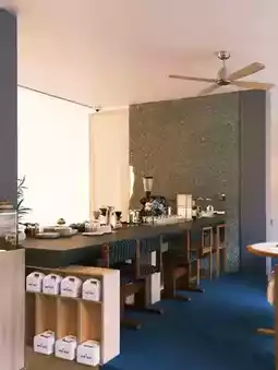 With a tranquil atmosphere and a modern interior featuring deep blue carpets, audio systems, and stylish touches, this cafe offers a sophisticated atmosphere and a relaxing stay. 🎛️