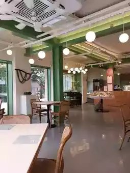 The cafe's structure was quite unique. The entrance wasn't immediately visible; you had to climb some stairs to find it. There were outdoor seating areas both inside and outside the building, and the interior had a multi-level structure, offering various spots to relax 🌿🏡.