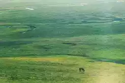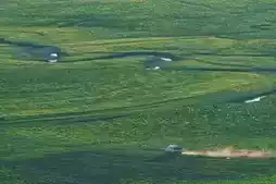 - **Plateau Wetland Landforms:** Featuring scattered lakes, winding streams, and pristine meadows, an aerial view reveals the unique spectacle of serpentine rivers meandering across the landscape.