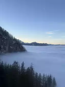 Upon reaching the summit, a glass observation deck extends like five fingers, offering a breathtaking panorama even in the chilly midwinter air. On clear days, the Alpine peaks rise above the sea of clouds, while on cloudy days, the mystical landscape, seemingly engulfed in clouds, is truly breathtaking.