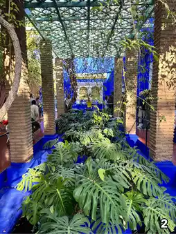 The buildings, exterior walls, decorations, and tiles are painted in "Majorelle Blue" to highlight the plants.
