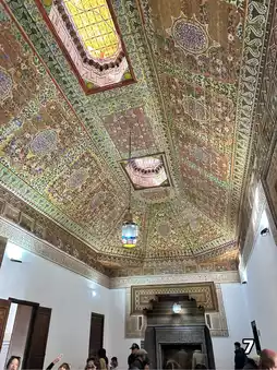The floors and walls are made of colorful tiles, the ceiling is decorated with miniature paintings, and the columns and walls are beautifully carved.