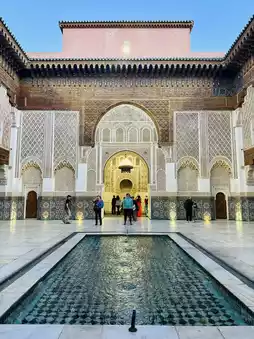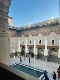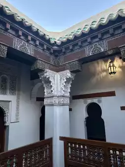 As I walked through its grand entrance, I was immediately struck by the intricate stucco carvings, zellige tilework, and cedarwood details. The central courtyard, with its marble fountain and geometric patterns, was simply breathtaking—a perfect blend of Moroccan and Andalusian artistry.