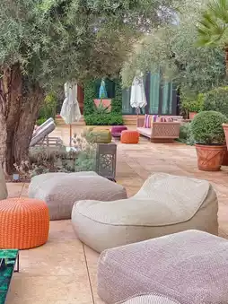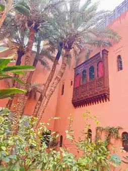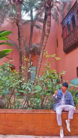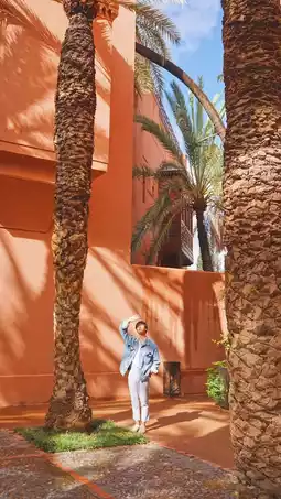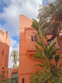 The pathways of the Royal Mansour Hotel's imperial garden gently ensnare visitors in a tender embrace of verdant trees and crimson walls the moment they step in. Lush greenery serves as a vibrant backdrop, with dense canopies resembling emerald clouds cascading from the sky, their swaying branches soothing passersby. The vermilion walls stand majestically, exuding a dignified silence honed by time.