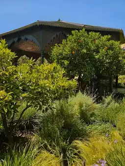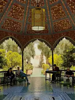 Enjoy mint tea or a fresh juice at the serene rooftop café inside the garden.
