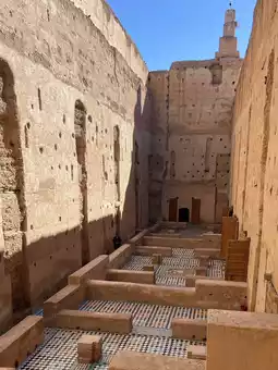El Badi Palace, a 16th-century masterpiece in Marrakech, is a testament to the city's rich history and architectural grandeur. This majestic palace, once a symbol of the Saadian dynasty's wealth and power, is a sprawling complex of intricately designed courtyards, ornate arches, and stunning craftsmanship. As you wander through the palace's expansive grounds, you'll discover beautifully restored sections, including the imposing minbar and the serene courtyard with its central sunken garden. The palace's unique blend of Islamic, Arabic, and Moorish influences is a reflection of Morocco's diverse cultural heritage. With its breathtaking architecture and rich history, El Badi Palace is a must-visit destination for anyone interested in exploring Marrakech's cultural treasures. Whether you're an architecture enthusiast, a history buff, or simply a curious traveler, El Badi Palace is an unforgettable experience that will leave you in awe of Morocco's majestic past.