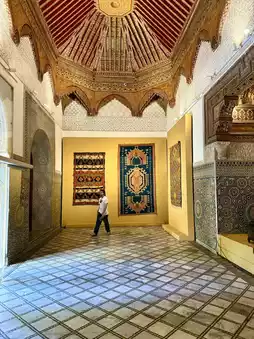 Every inch of Dar El Bacha feels designed to impress — yet it’s never overwhelming. The details pull you in: the colors of the tiles, the scent of polished wood, the way the light changes as you move from one room to another. This was once the home of the Pasha of Marrakech, and it still carries that sense of grandeur and grace. The museum highlights Morocco’s role as a meeting point between worlds, with exhibits that celebrate art, science, and trade. But beyond the information, what stays with you is the feeling — being surrounded by so much care, balance, and harmony.