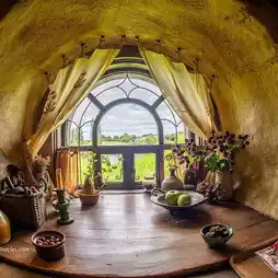 Hobbiton, located in the picturesque countryside , New Zealand