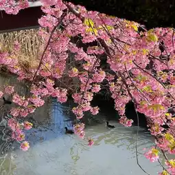 Getting to Matsudo Kawazu Cherry Blossoms is quite easy. Take the JR line to Matsudo Station, then walk towards Matsudo Shrine. It's just a five-minute walk, making it very convenient. The small stream beside the shrine is where the Kawazu cherry blossoms are in full bloom. On weekends, there are festivals and cosplay photoshoots, adding to the fun experience.
