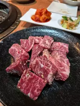 Our first order included beef tongue, skirt steak, and marinated short ribs. All three cuts showcased excellent freshness and aging, but the beef tongue stood out as the star. Thinly sliced and grilled to perfection, the beef tongue melted in the mouth with just a touch of salt. The skirt steak was juicy, while the marinated short ribs impressed with their sweet sauce and tender texture.